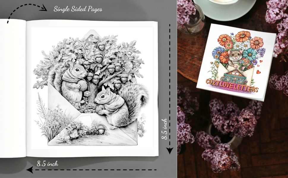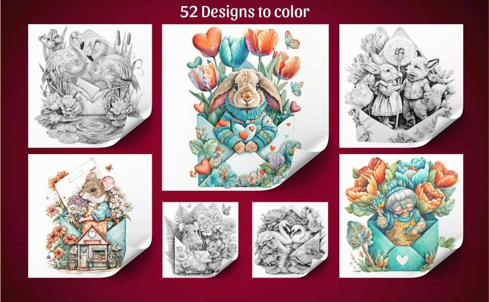 In this enchanting collection, every illustration reveals a magical envelope opening into a tiny world of love and happiness. Inside each envelope, you’ll discover charming animal couples sharing gentle moments together, as well as lovable characters expressing their passions through cozy hobbies like baking, painting, gardening, surfing, reading, and more. Each page feels like opening a sweet love letter — a small story of comfort, affection, and joy waiting to be brought to life with your colors.