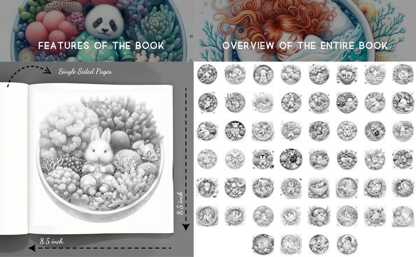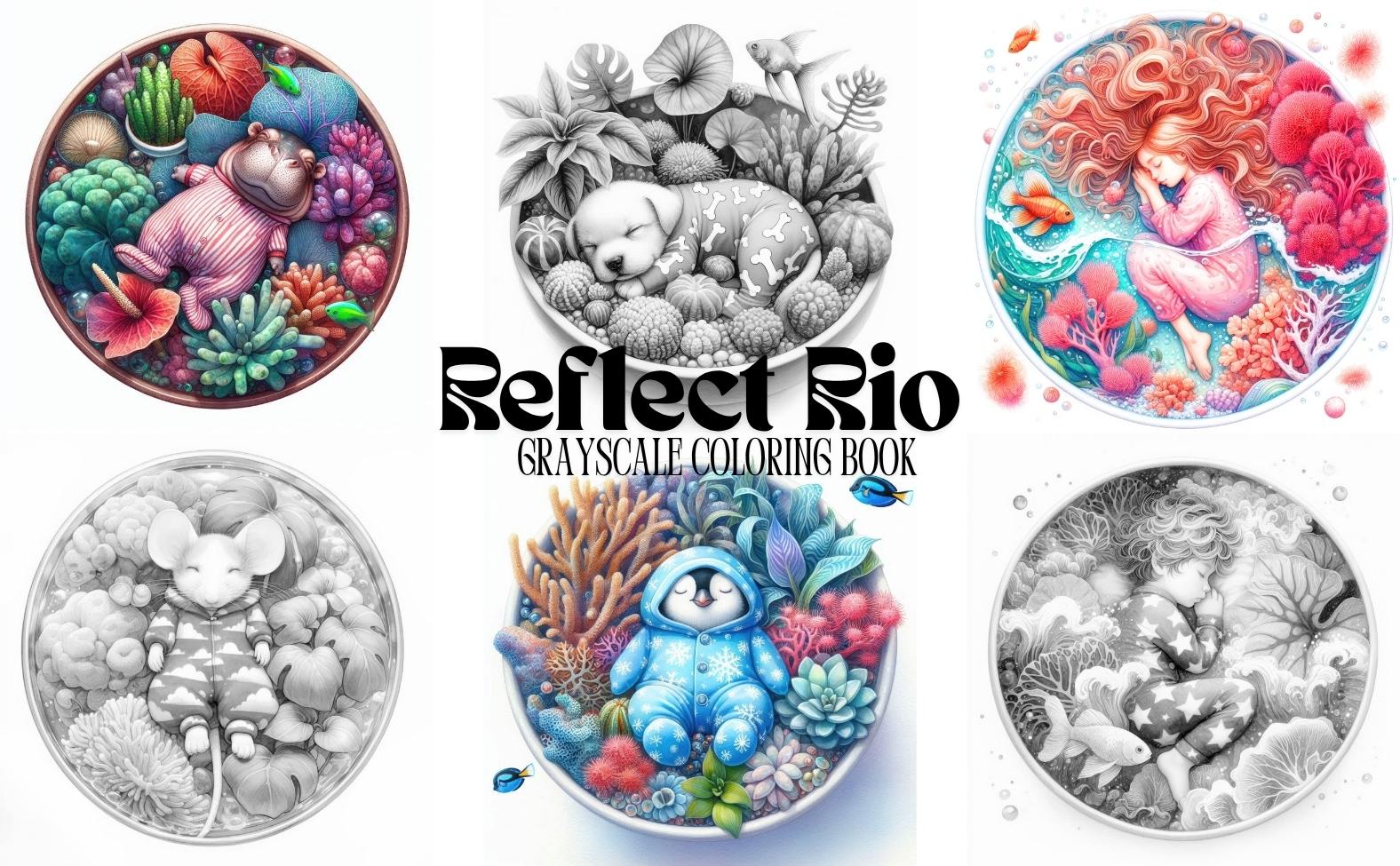 This heartwarming adult coloring collection features over 50 beautifully detailed grayscale illustrations of adorable sleeping animals and cozy children nestled in magical coral beds beneath the sea. Each scene blends fantasy and comfort, offering a serene escape for anyone seeking relaxation and creative joy.