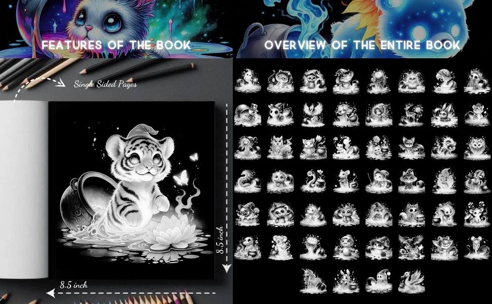 Each page features a black background, making your colors pop and giving your artwork a vibrant, dramatic look.