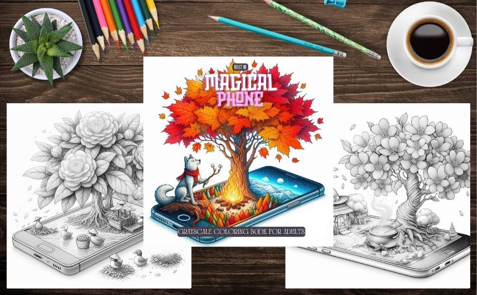 Step into a world where technology meets imagination in the Magical Phone Coloring Book — a one-of-a-kind grayscale collection that transforms ordinary smartphones into portals of fantasy and wonder.