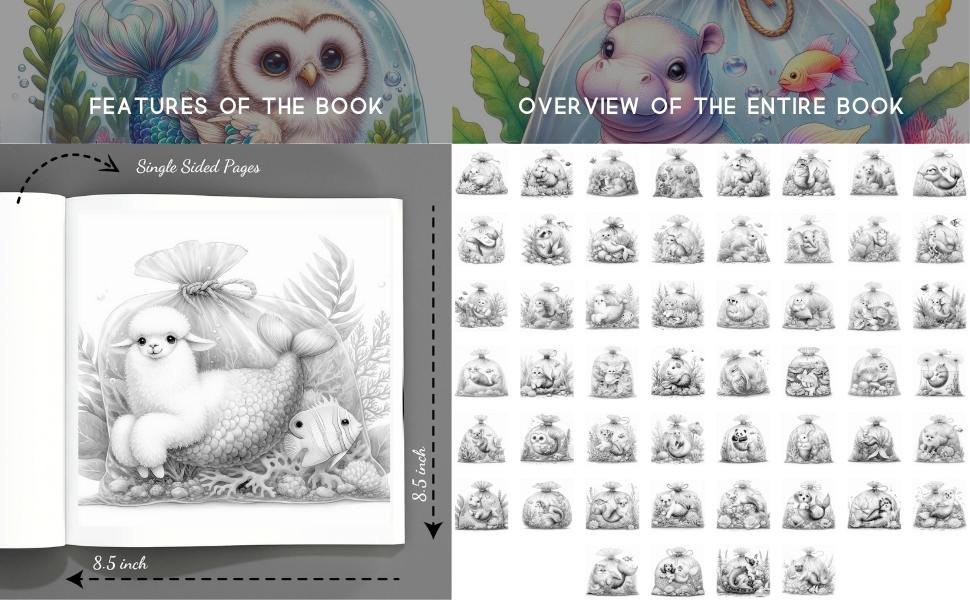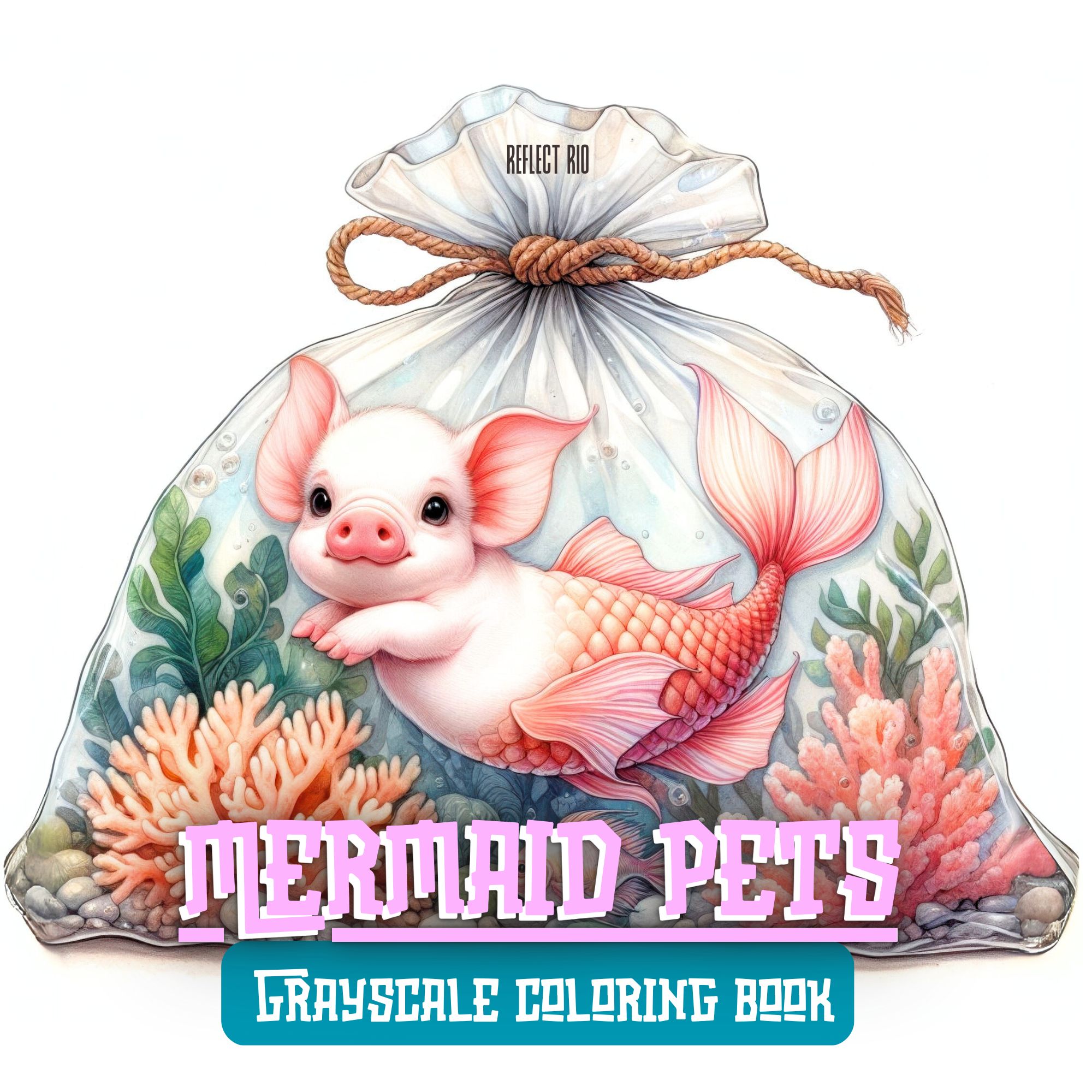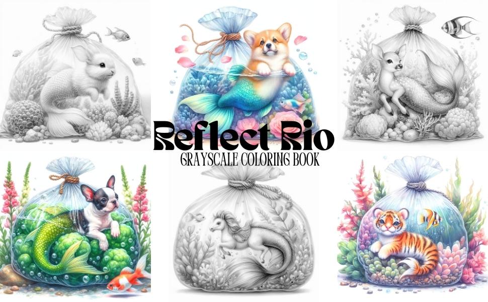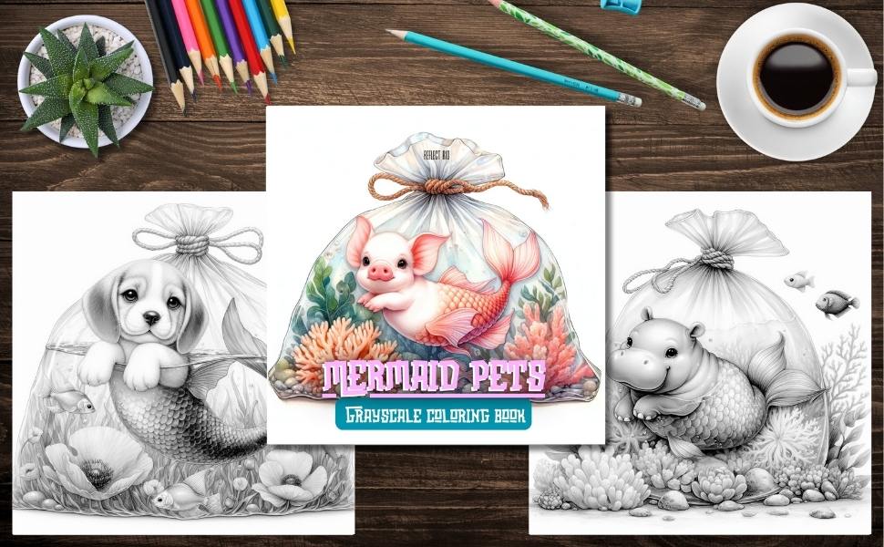 🐚✨ Dive into a dreamy sea of cuteness and fantasy! Mermaid Pets is a magical grayscale coloring book that whisks you away to an underwater world where adorable baby animals become enchanting mermaid hybrids, each swimming inside their own whimsical transparent aquatic bag filled with seaweed, coral, and glistening bubbles.