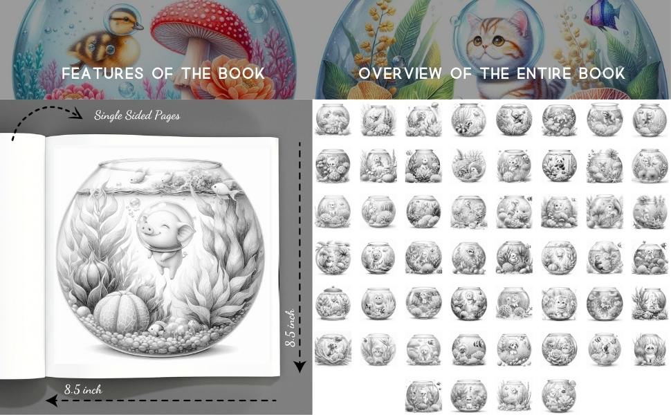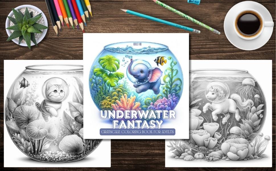 🐘 Inside, you’ll discover delightful underwater scenes with tiny elephants, playful foxes, curious bunnies, and more, all captured in peaceful, imaginative moments beneath the sea. The intricate grayscale illustrations offer soft shading to guide your coloring, helping you effortlessly add depth and vibrance to each fishbowl environment.