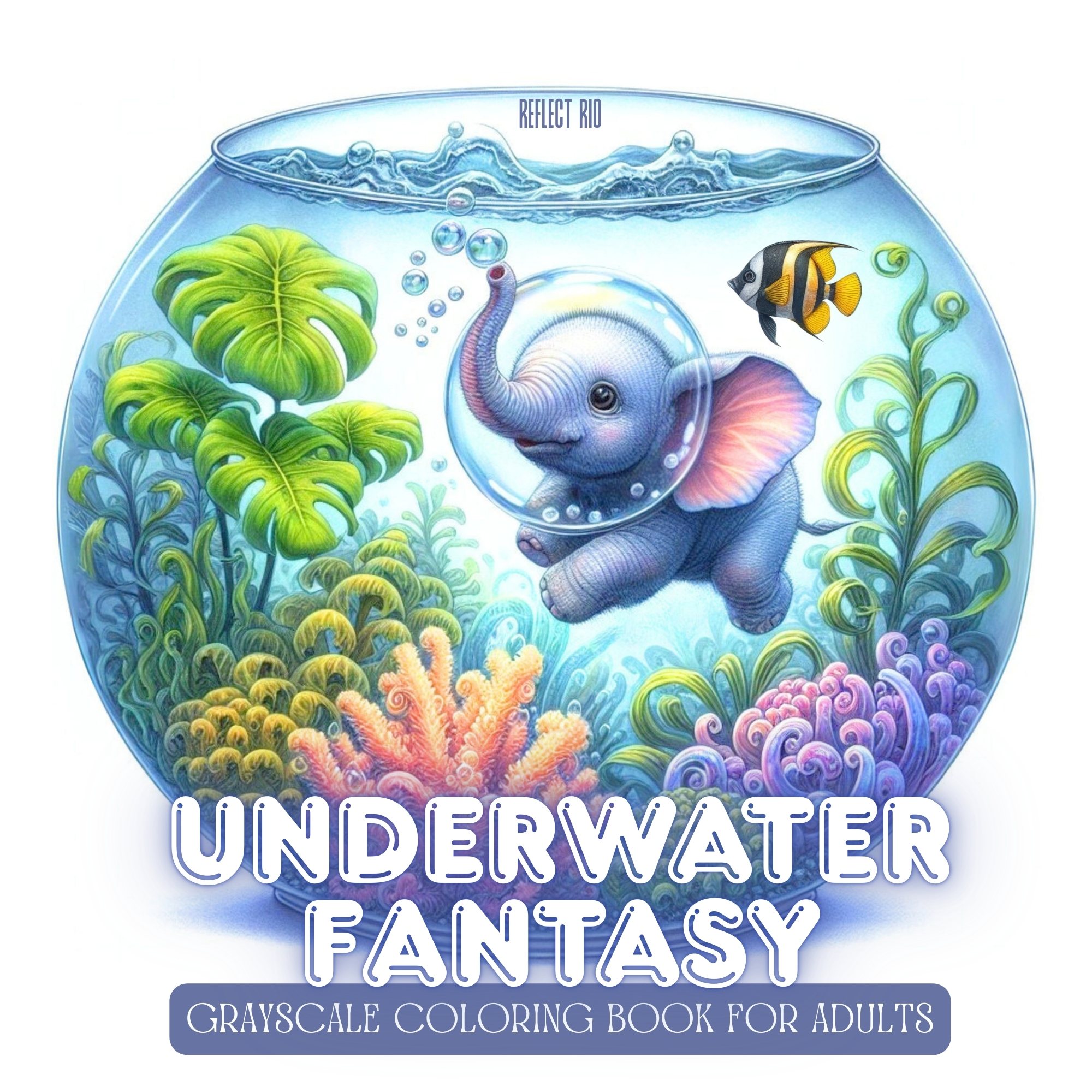 🌊 Immerse yourself in a dreamlike aquatic world with Underwater Fantasy, a charming grayscale coloring book designed especially for adults who love whimsy, relaxation, and creativity. Each page features enchanting round glass aquariums filled with lush coral reefs, flowing seaweed, and adorable tiny animals—each wearing a transparent air bubble on their head as they explore their magical miniature ocean world.