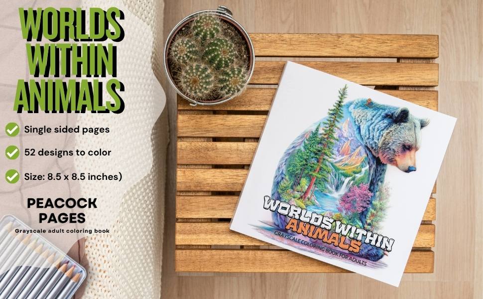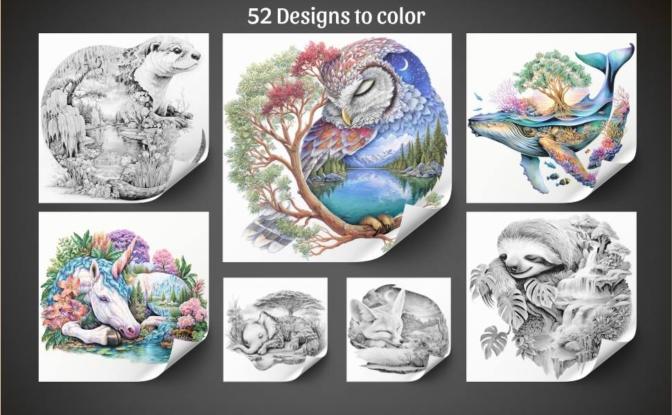 Worlds Within Animals Coloring Book invites you to explore a magical collection of wildlife illustrations where stunning natural landscapes are hidden within the forms of majestic animals.